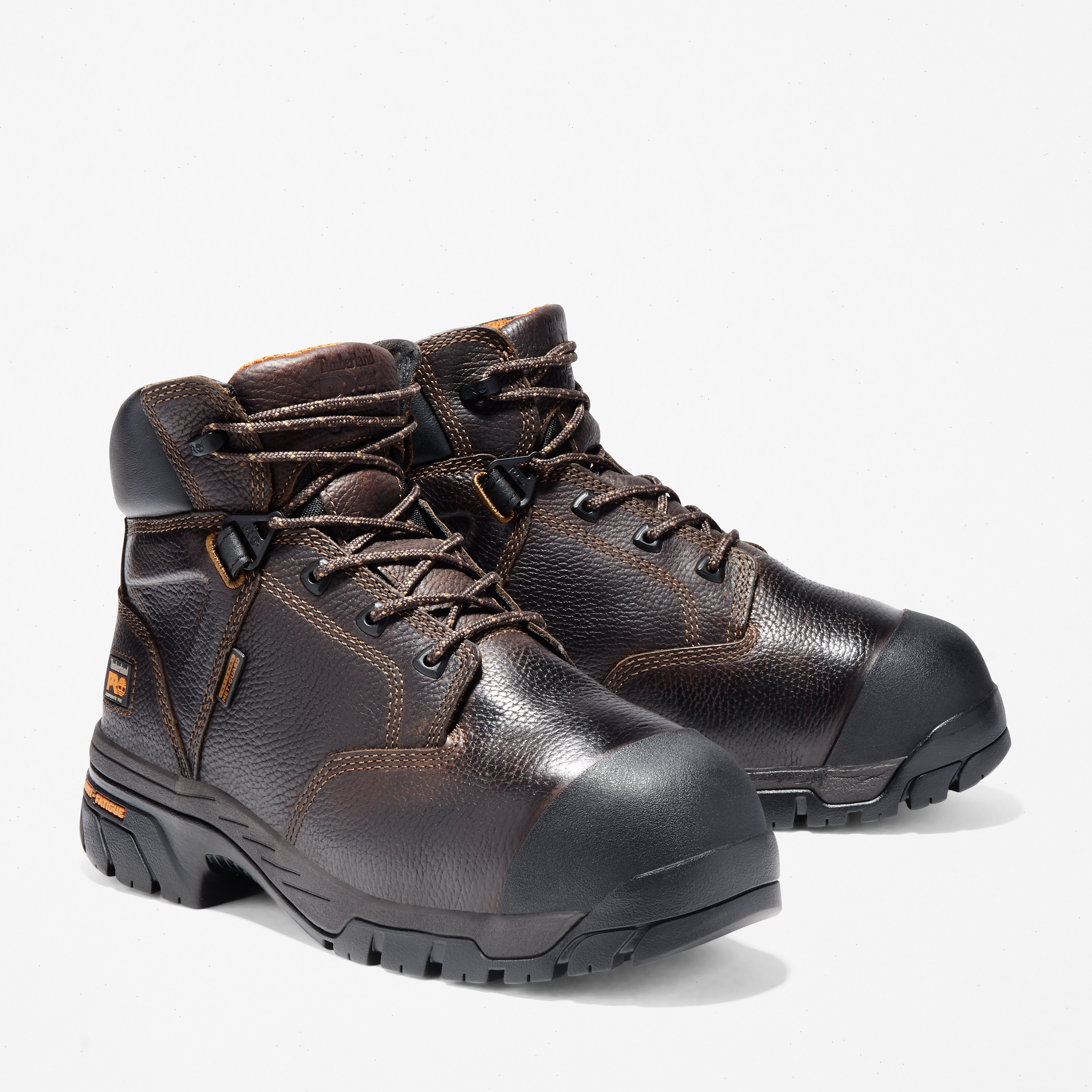 The ultimate in lightweight comfort, our men's Timberland PRO® Helix Met-Guard boots also provide the durable performance and protection you need for long hours in tough conditions. Starting with mutilation-free, Premium Timberland® leather uppers, we added our internal, anatomical, high-rebound Anti-Fatigue metatarsal guards for impact resistance and our molded Timberland PRO® rubber toe guards for an extra layer of protection. Other safety features include composite safety toes, electrical hazard protection, and nylon shanks for support. Their Anti-Fatigue Technology footbeds offer shock absorption and energy return, while their breathable, moisture-wicking linings are made of ReBOTL™ fabric containing at least 50% recycled plastic. Plus, our heat-, oil-, slip-, and abrasion-resistant, non-marking rubber outsoles feature Ladder Lock™ heels that help grip ladder rungs.