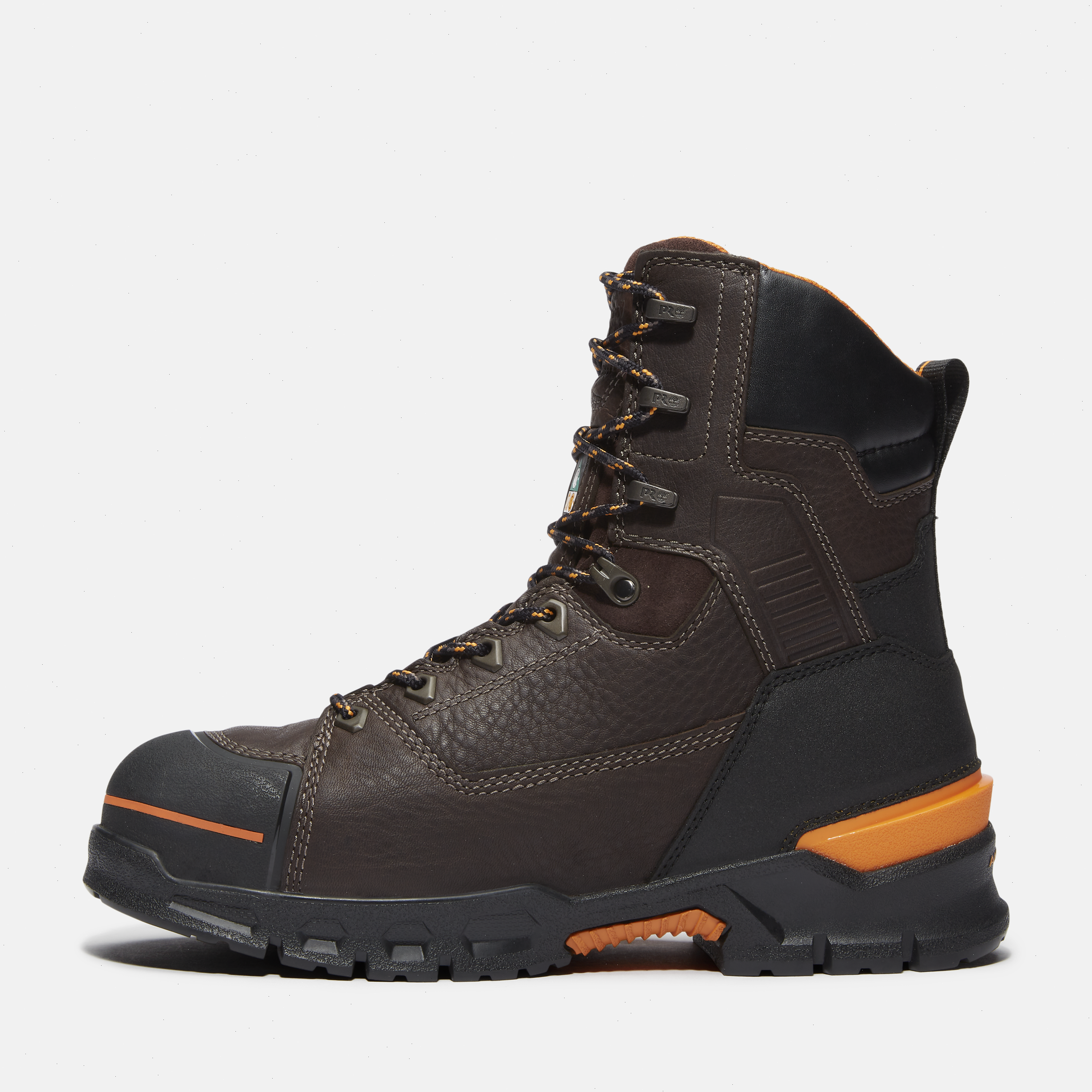 Endurance is more than just a name. Our newest work boots help deliver on that promise for the long haul with performance, protection, and comfort features you can depend on to help you through challenging work days. You'll appreciate their full-grain, Premium Timberland® waterproof leather uppers with molded TPU and abrasion-resistant Ever-Guard™ leather reinforcement in high-wear areas, composite safety toes, electric hazard protection, electric shock-resistant soles, Anti-Fatigue Technology polyurethane midsoles designed for shock absorption and energy return, puncture-resistant plates, and breathable, moisture-wicking linings with antimicrobial treatment for odor control. Plus, underneath you'll find our heat-, oil-, slip-, and abrasion-resistant, non-marking Timberland PRO® rubber outsoles designed for durable traction.