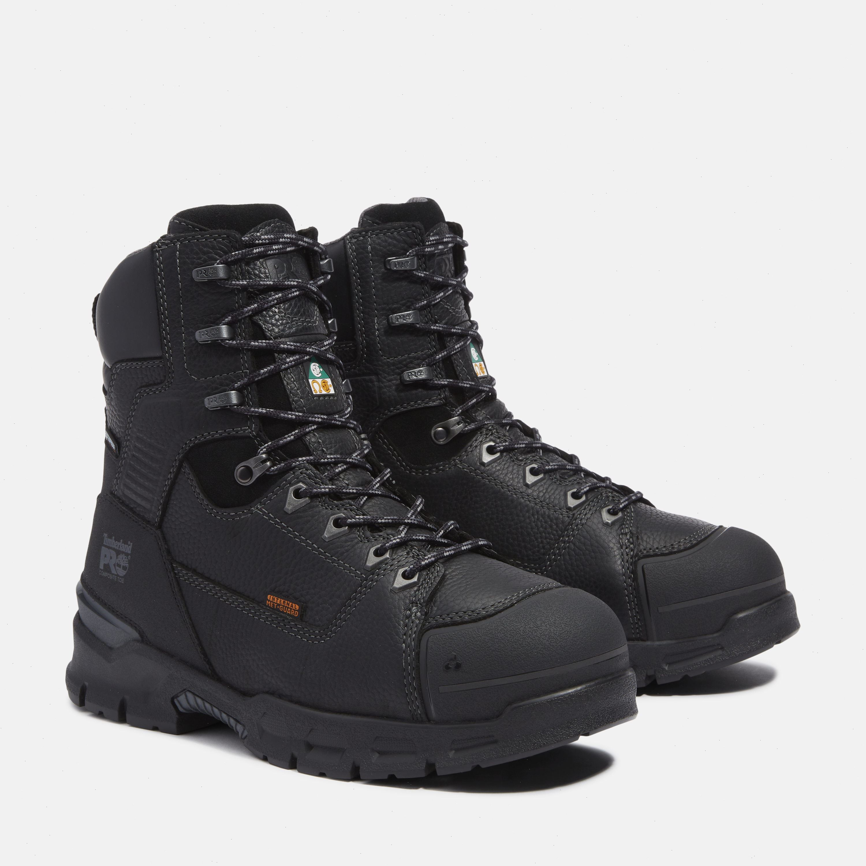 Endurance is more than just a name. Our newest work boots help deliver on that promise for the long haul with performance, protection, and comfort features you can depend on to help you through challenging work days. You'll appreciate their full-grain, Premium Timberland® Waterproof Leather uppers with molded TPU and abrasion-resistant Ever-Guard™ leather reinforcements in high-wear areas and internal waterproof membranes built for waterproof protection and bloodborne pathogen resistance to help keep you dry in wet-weather environments. For safety and all-day comfort, we added internal Anti-Fatigue Technology metatarsal guards with Timberland PRO® FLEX technology for freedom of motion, composite safety toes, electric hazard protection, electric shock-resistant soles, Anti-Fatigue Technology polyurethane midsoles designed for shock absorption and energy return, puncture-resistant plates, and breathable, moisture-wicking linings with antimicrobial treatment for odor control. Plus, underneath you'll find our heat-, oil-, slip-, and abrasion-resistant, non-marking Timberland PRO® rubber outsoles designed for durable traction.